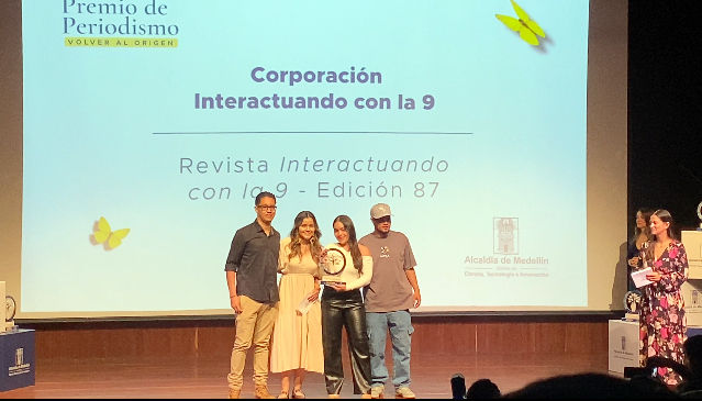 El pasado 19 de septiembre, la revista Interactuando con la 9 fue reconocida con el segundo lugar en la categoría “Mejor periódico o revista impresa” del Premio de Periodismo Alcaldía de Medellín, un galardón que destaca el trabajo de los medios que construyen ciudad desde la palabra, la imagen y la comunidad.
